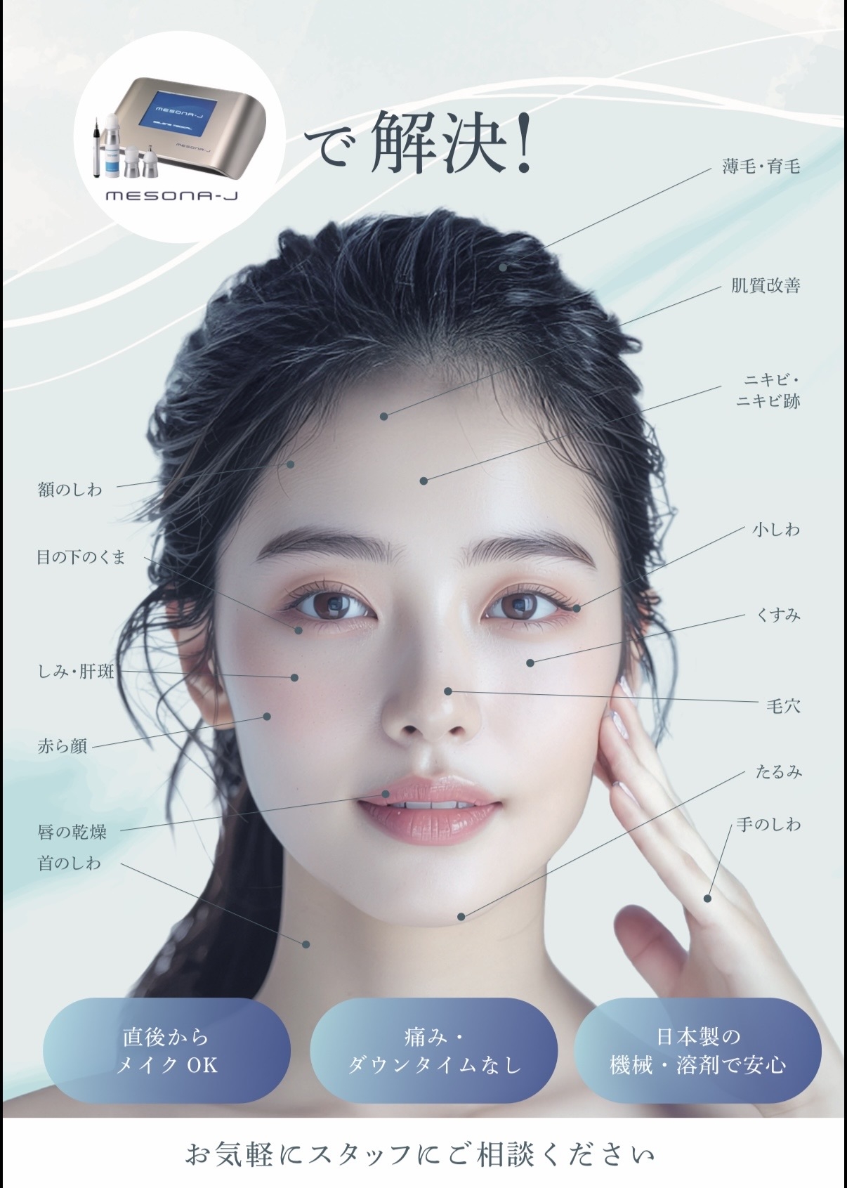 痛みやダウンタイムがほとんどなく、敏感な時期でも受けやすいのが特徴です。